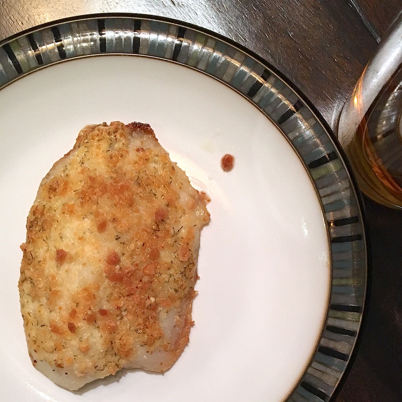 1 ½ cups full-fat Greek yogurt, labneh or sour cream, ¼ cup finely chopped chives, ¼ cup finely chopped parsley, 2 tablespoons finely chopped dill, 2 tablespoons fresh lemon juice, 1 small garlic clove, finely grated or chopped, Kosher salt and freshly ground pepper, 1 ½ pounds boneless, skinless chicken breasts, Kosher salt and freshly ground pepper, 1 cup all-purpose flour, 2 teaspoons smoked paprika, 2 large eggs, beaten to blend, 2 cups bread crumbs (preferably panko or other coarse bread crumbs), 3 tablespoons olive oil
