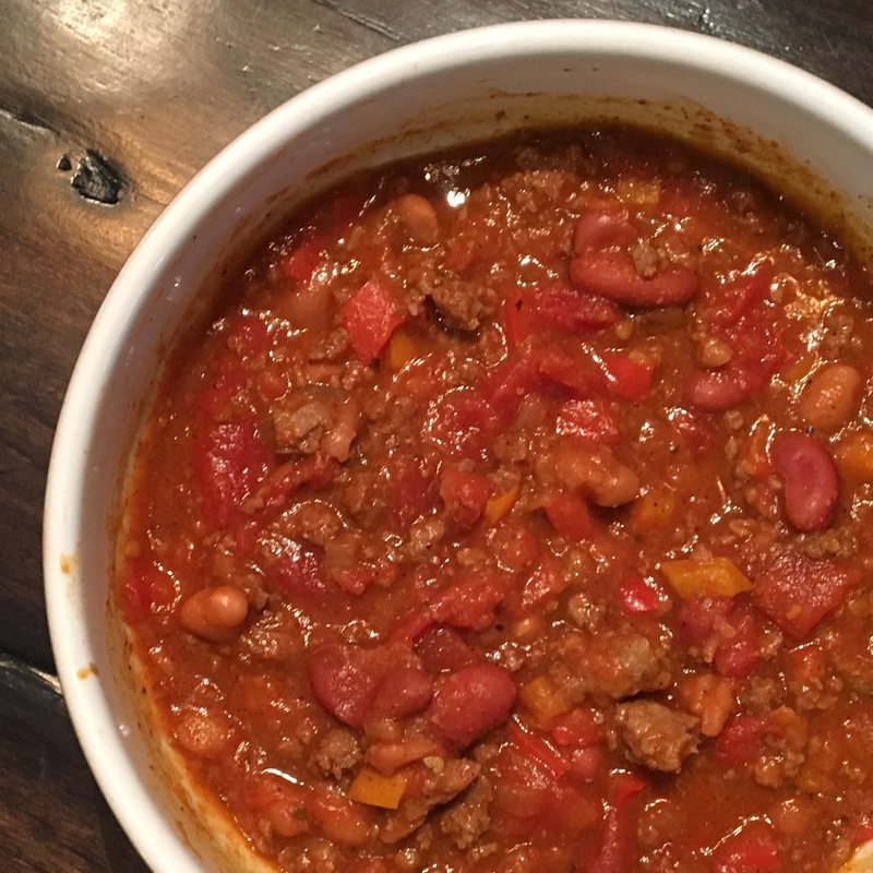 3/4 lb ground beef, 3/4 lb ground chorizo, 1/2 large white or yellow onion (diced), 1 jalalpeno (seeded and diced), 3 cloves garlic (minced), 3/4 cup beer (I used Guinness Blonde), 1 cup ketchup, 1 Tbsp brown sugar, 1 1/2 tsp chili powder, 1/2 tsp dry mustard powder, 1/4 tsp cayenne pepper, Couple dashes of hot sauce, salt and pepper to taste, 1 Tbsp butter, Olive oil, Pretzel buns (toasted, or your favorite buns)