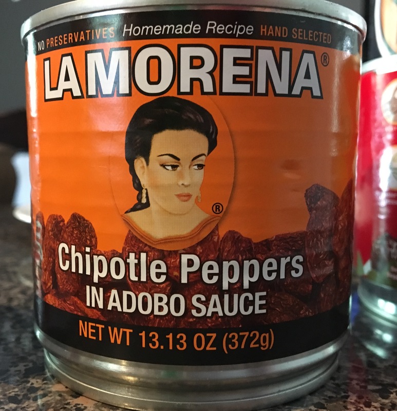 2 limes, the juice of, 4tsp chili powder, 2tsp cumin, 2tsp oregano, 4 cloves of garlic, ½ cup of olive oil, 13oz can of Chipotle Peppers in Adobo Sauce (La Morena is best; Liked Goya better than Embasa. Taste was hot, smoky, and vinegary. Goya was more muted on heat and vinegar but also had a more spaghetti-os kind of flavor.), salt to taste, chicken (4lbs or 1 1/3lbs?)