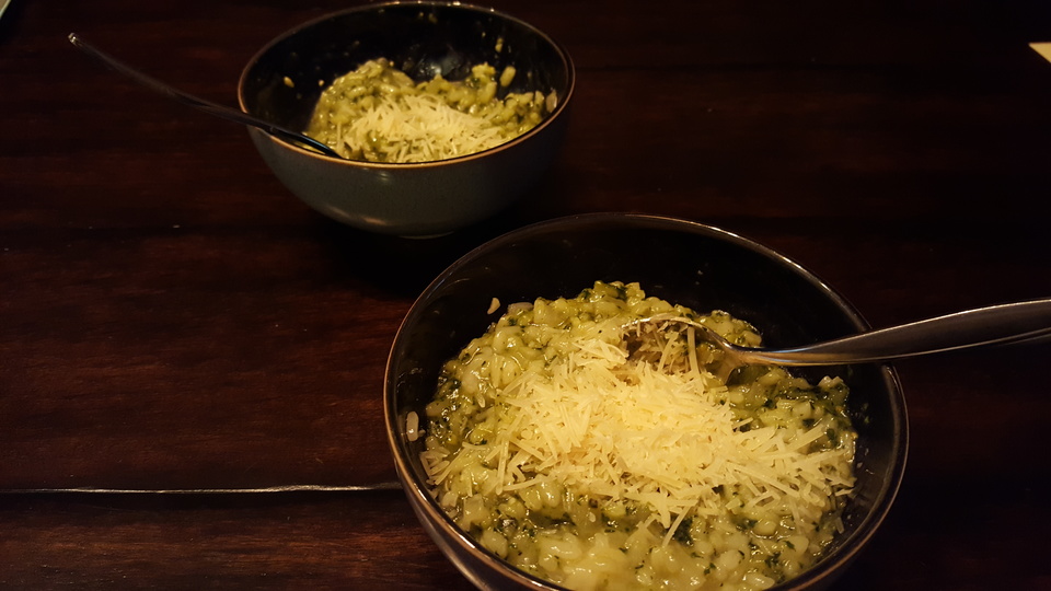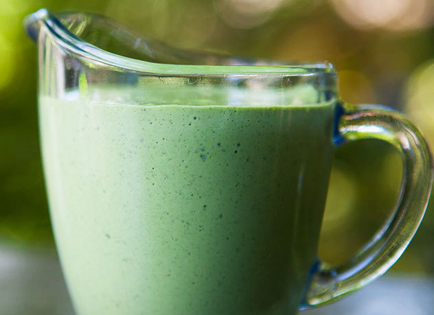 ⅔ cup cilantro, ⅔ cup parsley, ⅔ cup Thai basil, 4 cups spinach, 2 cloves garlic, peeled, 2 tablespoons peeled and chopped fresh ginger