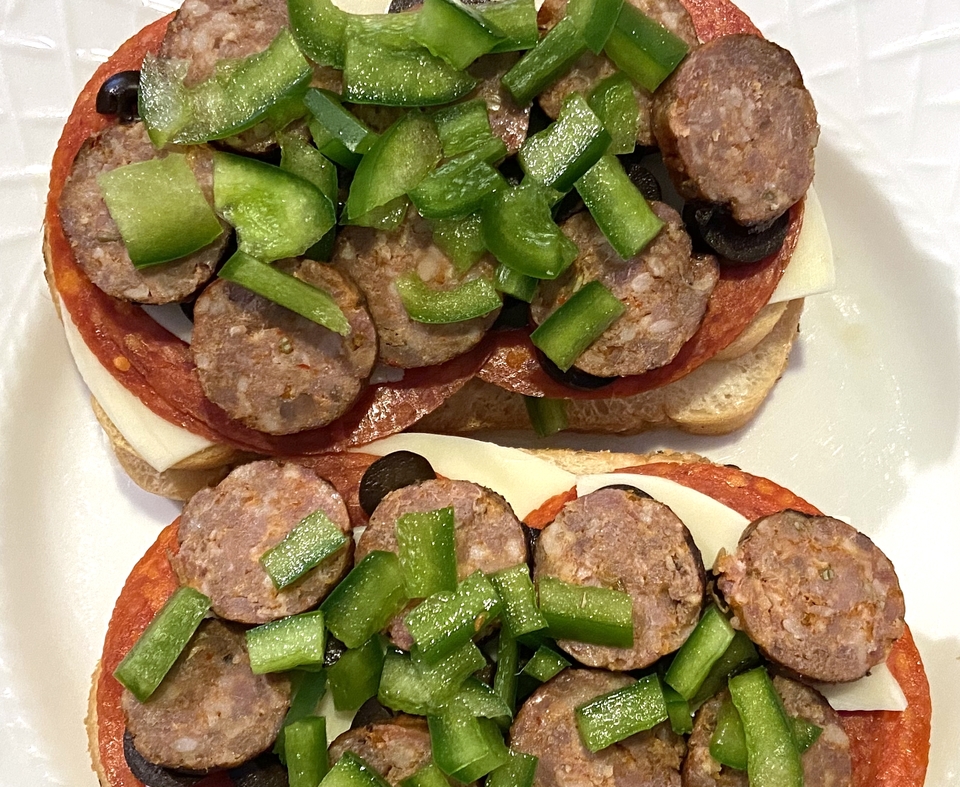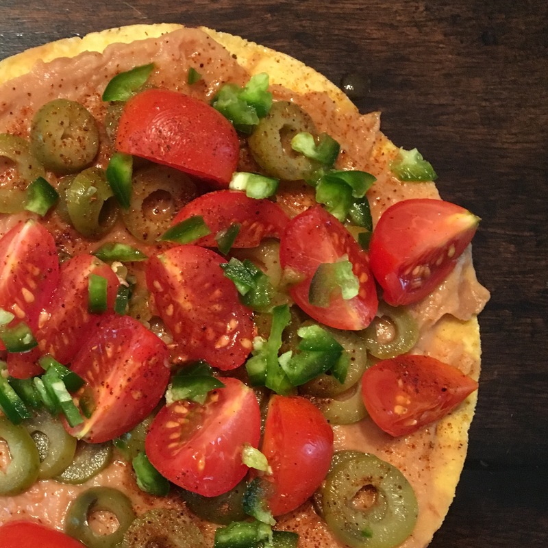 Tostadas, Refried Beans, Olives, Tomatoes, Jalapenos, Cheddar Cheese, Chipotle seasoning, Sour Cream