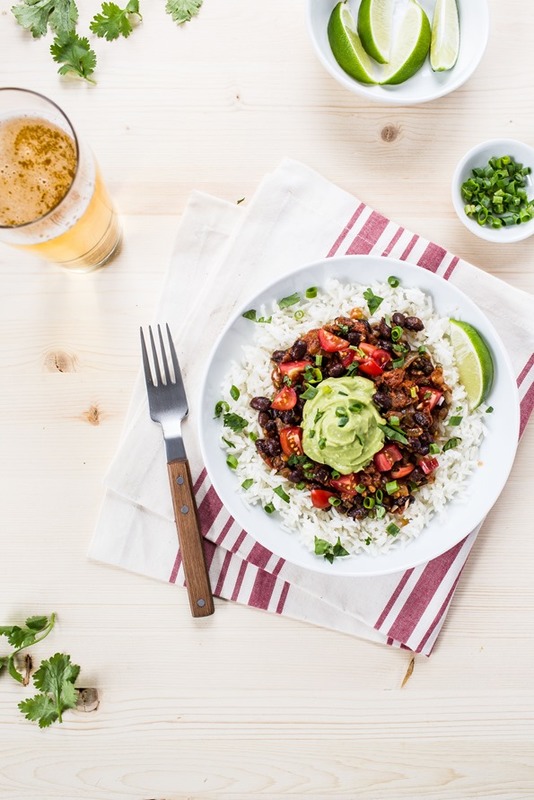 ⅓ cup lime juice, ¼ cup pineapple juice (no sugar added), 2 tablespoons Worcestershire sauce, 3 tablespoons olive oil, 1 tablespoon minced garlic, 2 teaspoon EACH: ground cumin AND chili powder (or more to taste), 1 teaspoon EACH: kosher salt AND smoked paprika, ½ teaspoon EACH: black pepper AND red pepper flakes (or more to taste), ¼ cup chopped cilantro, 1 ½ - 2 pounds skirt or flank steak, 1 tablespoon oil (high heat), 2 medium white onions, sliced, 1 large poblano, ribs and seeds removed then sliced, 2-3 bell peppers, thinly sliced (any color you please!), guacamole, salsa, cilantro leaves, salsa verde, sour cream, black beans, rice, tortillas, cilantro-lime rice, sautéed corn, tomatoes, lettuce, shredded cheese, etc.