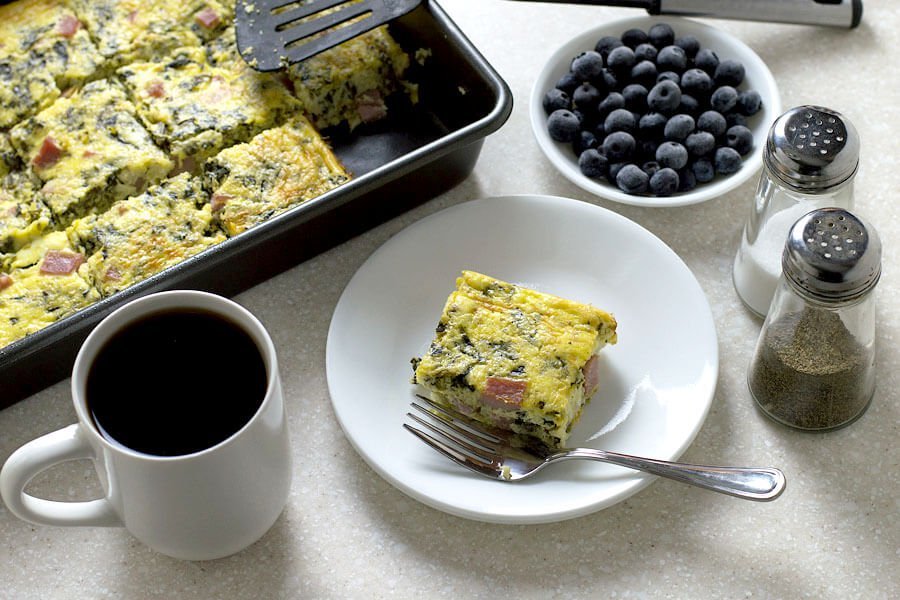-2 lbs 90% lean ground beef, -1/2 yellow or white onion, diced, -3 cloves garlic, minced, -2 tbsp extra virgin olive oil, -5 ounces (3-4 cups) baby spinach leaves, chopped into small pieces, -1 cup old-fashioned rolled oats (or 1 cup prepared oat flour), -2 eggs, -1/2 cup milk, -1/4 cup parmesan cheese, -3/4 tsp sea salt, -1/2 tsp black pepper, -1/2 tsp dry basil, -1/2 tsp crushed red pepper