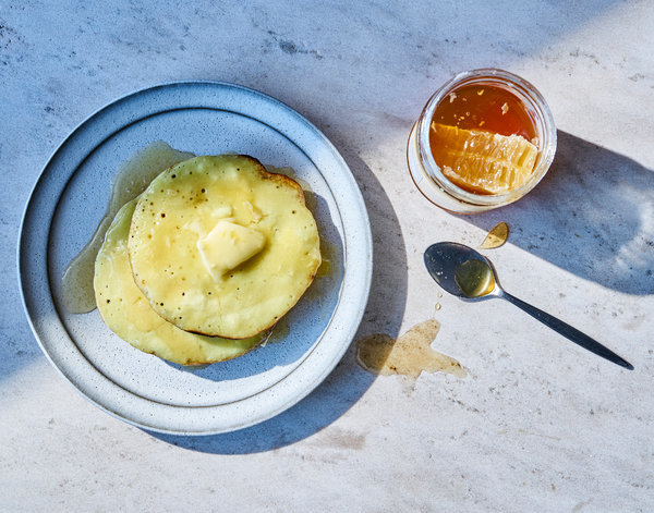 240 g (2 cups) plain gluten free flour blend, 50 g (4 tbsp) caster/superfine or granulated sugar, 1 tsp baking powder, 1 tsp baking soda, ½ tsp xanthan gum ((Omit if your gluten free flour blend already contains xanthan gum.)), ½ tsp salt, 400 g (1¾ cups) buttermilk, room temperature, 2 US large/UK medium eggs, room temperature, 3 tbsp melted unsalted butter, plus extra for buttering the pan or griddle, ½ tsp vanilla bean paste ((or 1 tsp vanilla extract))