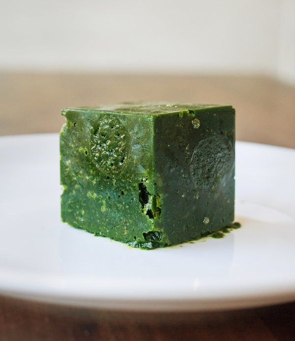 ⅔ cup cilantro, ⅔ cup parsley, ⅔ cup Thai basil, 4 cups spinach, 2 cloves garlic, peeled, 2 tablespoons peeled and chopped fresh ginger