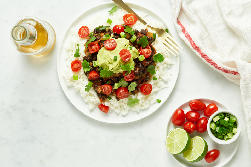 ⅓ cup lime juice, ¼ cup pineapple juice (no sugar added), 2 tablespoons Worcestershire sauce, 3 tablespoons olive oil, 1 tablespoon minced garlic, 2 teaspoon EACH: ground cumin AND chili powder (or more to taste), 1 teaspoon EACH: kosher salt AND smoked paprika, ½ teaspoon EACH: black pepper AND red pepper flakes (or more to taste), ¼ cup chopped cilantro, 1 ½ - 2 pounds skirt or flank steak, 1 tablespoon oil (high heat), 2 medium white onions, sliced, 1 large poblano, ribs and seeds removed then sliced, 2-3 bell peppers, thinly sliced (any color you please!), guacamole, salsa, cilantro leaves, salsa verde, sour cream, black beans, rice, tortillas, cilantro-lime rice, sautéed corn, tomatoes, lettuce, shredded cheese, etc.