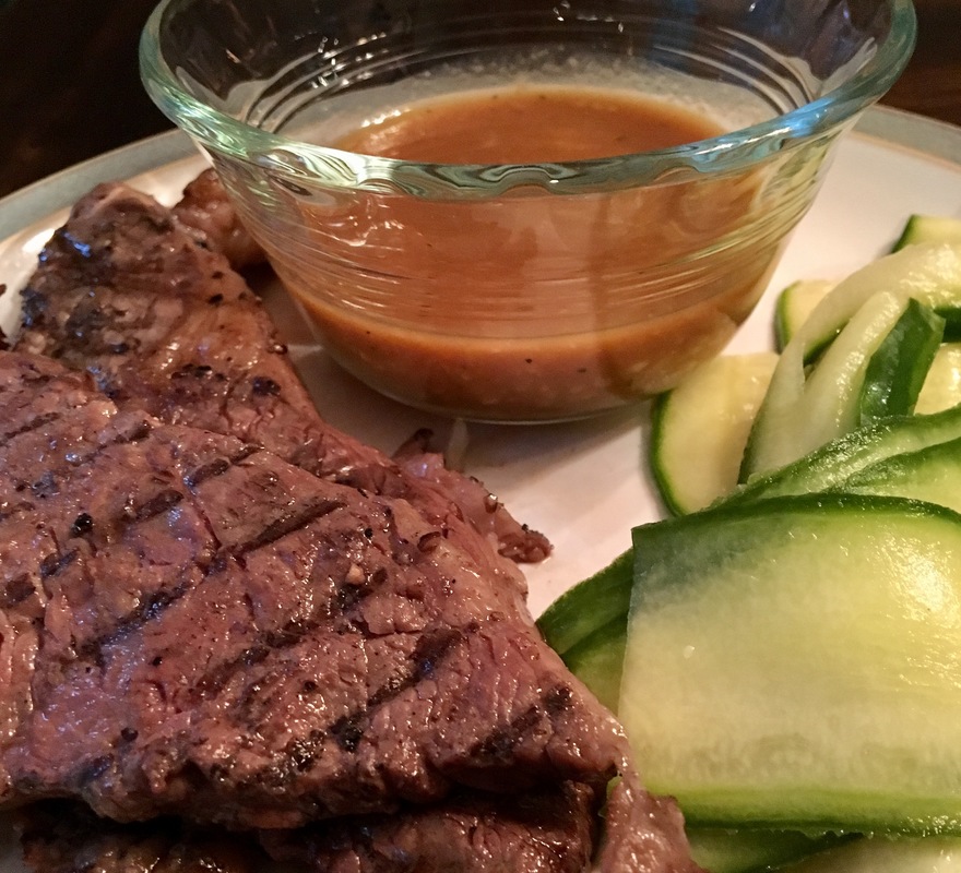 2 tablespoons butter, 1 pound sirloin steak, 35-40 ounces Bertolli or DeLallo Vodka Sauce (it's about 1 1/2 jars), 2-3 large zucchini (or you could use regular pasta, but zucchini is so good!)
