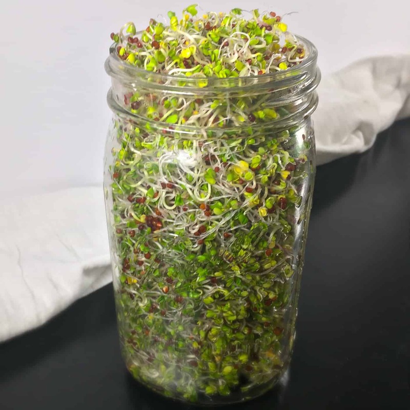 3/4 cup quinoa, covered by 1″ of water and soaked for 6 – 8 hours (or overnight), 1/4 cup water, 1/2 teaspoon baking powder, 1/2 teaspoon salt, 2 tablespoons olive oil, 1/2 cup tomato sauce, 1 cup shredded goat cheese, Fresh herbs, Red pepper flakes