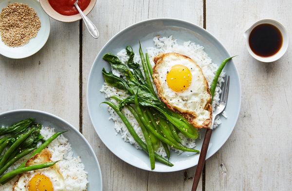 Toasted Coconut Rice With Bok Choy and Fried Eggs